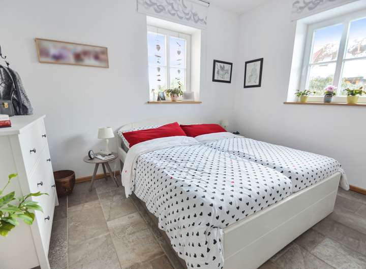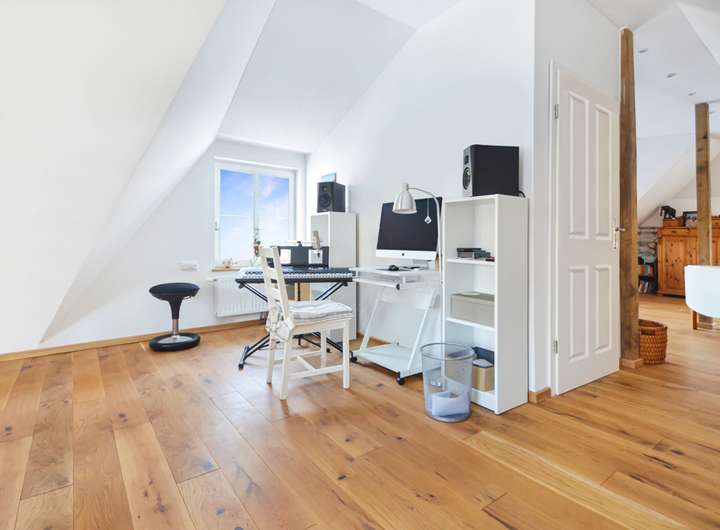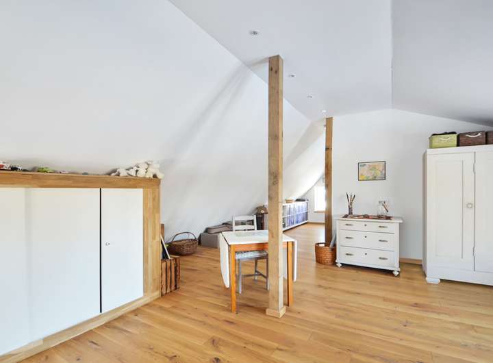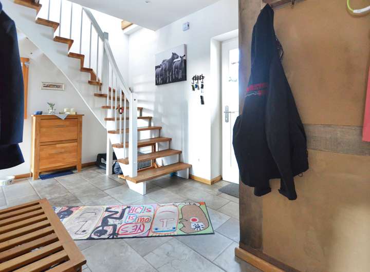 -Bodenbelag: EG moderne Fliesen, OG Eichenparkett