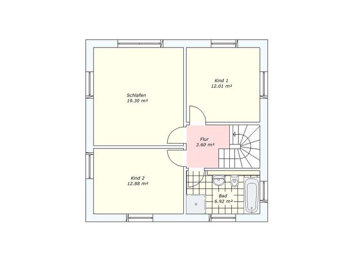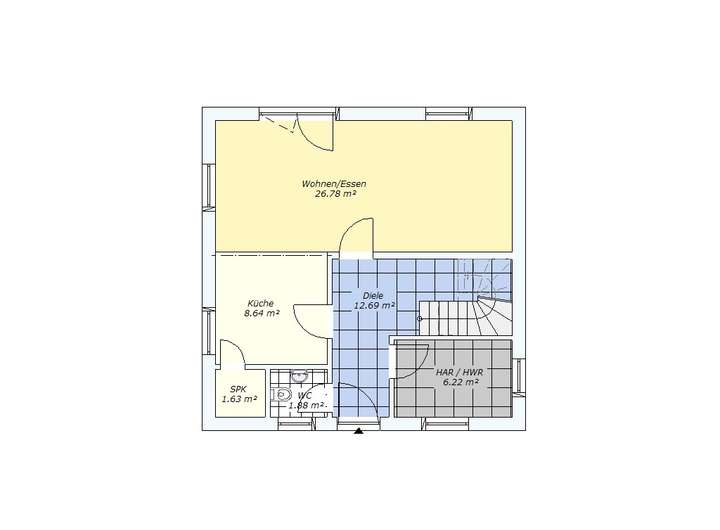 Ein „luftiger“ Grundriss lässt die Wohnfläche im Erdgeschoss größer aussehen, als sie „zahlenmäßig“ ist. Kein neuer Trick, sondern bei vielen Familien bereits angenehme Realität: die offene Küche. Knapp 40 qm Wohn-Ess-Bereich schaffen definitiv eine Wohlfühl-Atmosphäre! Und auch in der oberen Etage haben sowohl die Kids als auch die Eltern ausreichend Platz in den entsprechenden Räumen: 12 und 13 qm misst der Bereich für den Nachwuchs und fast 20 qm das Eltern-Schlafzimmer. Effizient nennt unser Architekt das Raum-Konzept, das bewusst auf Details wie eine begehbare Ankleide o.ä. verzichtet. Natürlich kann unsere Baufamilie mit ihren eigenen Vorstellungen und Wünschen die beiden Geschosse auch ganz individuell gestalten!