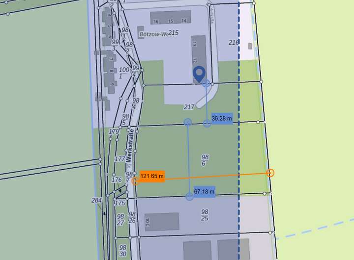 Das Grundstück Flur 98/6, liegt in Bötzow West und ist als Gewerbefläche ausgewiesen.