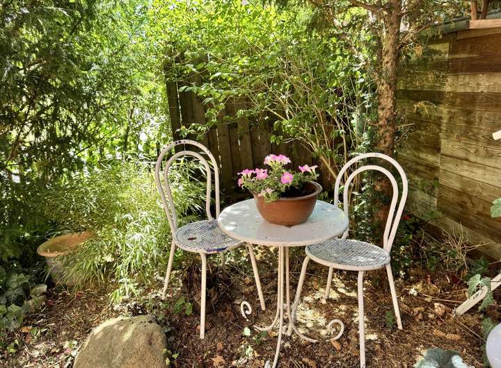 Die sonnige Terrasse dient an schönen Tagen zum Entspannen und Genießen.