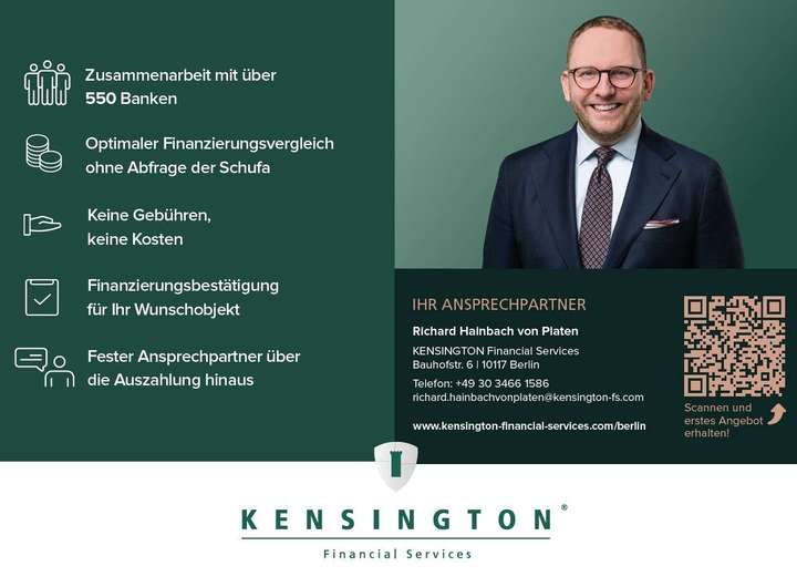 Für nähere Informationen zu dieser Liegenschaft steht Ihnen das KENSINGTON Team Havelland/ Berlin City-West unter den Rufnummern 03322 - 507 81 00, oder 030 - 921 01 46 00 gerne zur Verfügung.