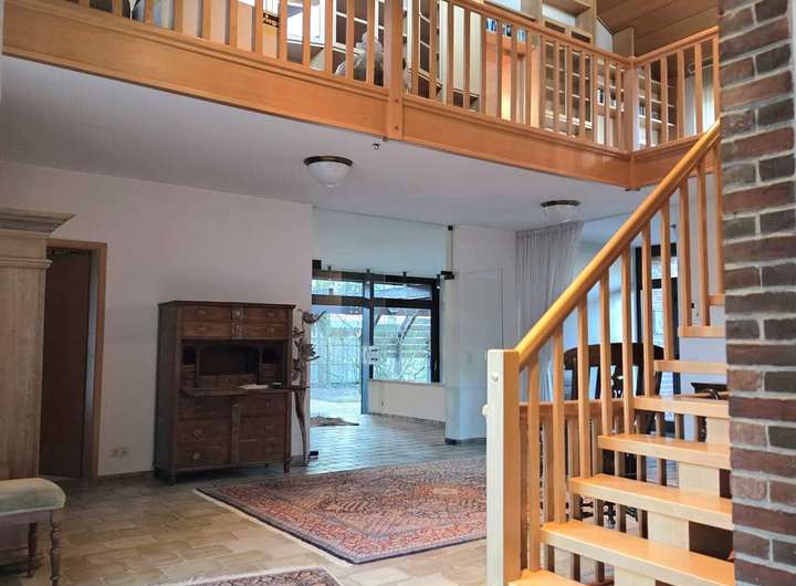 Zum Verkauf steht eine hochwertige Architektenvilla mit angeschlossenem Büro- und Lagerkomplex, die sich ideal für Selbstständige oder Unternehmer eignet, die Arbeiten und Wohnen an einem Standort miteinander verbinden möchten. Das gesamte Ensemble wurde 1985 in massiver Bauweise errichtet und überzeugt durch seine Großzügigkeit und vielseitige Nutzungsmöglichkeiten. Das Wohnhaus verfügt über eine Wohnfläche von ca. 281,55 m² und ist vollständig unterkellert mit einer zusätzlichen Fläche von ca. 171,06 m². Ergänzt wird das Anwesen durch einen separaten Bürobereich sowie eine großflächige Gewerbe- und Lagereinheit.