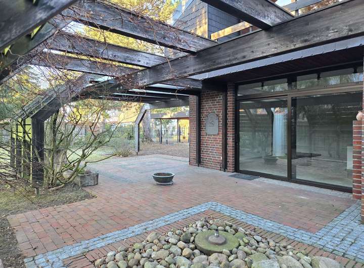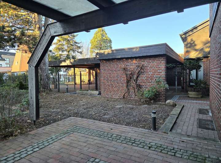 Gleichzeitig eignet sich das Umfeld auch zum Wohnen. Die nähere Umgebung ist überwiegend ruhig und durch Ein- und Zweifamilienhäuser geprägt. Grünflächen und Freiräume in der Umgebung sorgen für ein angenehmes Wohnumfeld. Einrichtungen des täglichen Bedarfs, Schulen, Kindergärten und Freizeitangebote sind gut erreichbar und unterstützen eine alltagstaugliche Nutzung. Auch die Anbindung an den öffentlichen Nahverkehr ist gegeben.