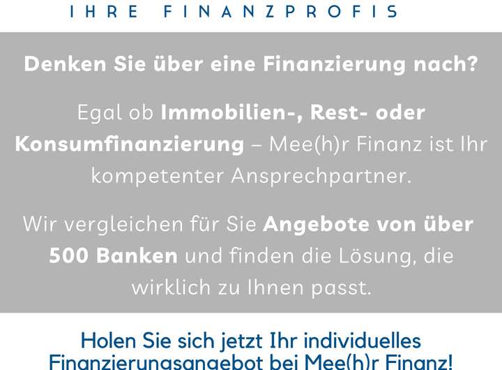 Alle Angaben beruhen auf den Informationen der Verkäufer bzw. vom Verkäufer beauftragten Dritten und sind vom Mee(h)r Makler nach bestem Wissen und Gewissen für Sie zusammengetragen, jedoch ist Irren menschlich und es kann daher immer mal sein, dass sich der eine oder andere Fehler eingeschlichen hat. Das Angebot ist daher freibleibend und unverbindlich. Mee(h)r Makler Immobilien GmbH übernimmt keine Haftung für die Richtigkeit, dies gilt auch für die Angabe der Wohnfläche, Baujahr, Grundstücksgröße, Grundriss / Wohnflächenberechnungen sowie weitere objektbezogene Daten. Es ist Sache des Kunden, diese Angaben auf ihre Richtigkeit hin zu überprüfen.