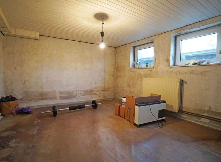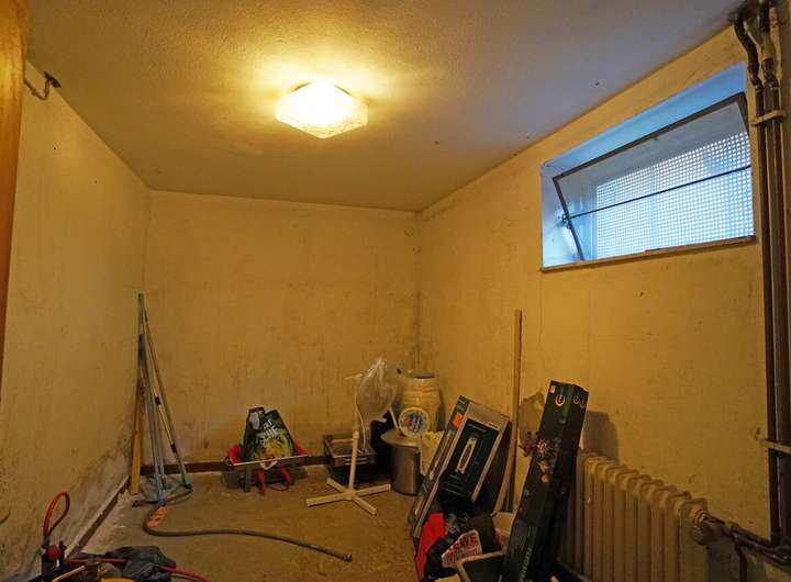 Das Untergschoss bietet zusätzlichen Platz, befindet sich jedoch - wie nahezu das gesamte Gebäude - in einem sanierungsbedürftigen Zustand. Mehrere Wände weisen Feuchtigkeit auf und die Öl-Heizung aus dem Jahr 1973 ist defekt und muss erneuert werden. Der Keller selbst verfügt über einen Hobbyraum, eine Waschküche, ein Duschbad, den Heizungsraum sowie zwei große Vorratsräume und bietet nach einer Sanierung vielfältige Nutzungsmöglichkeiten.