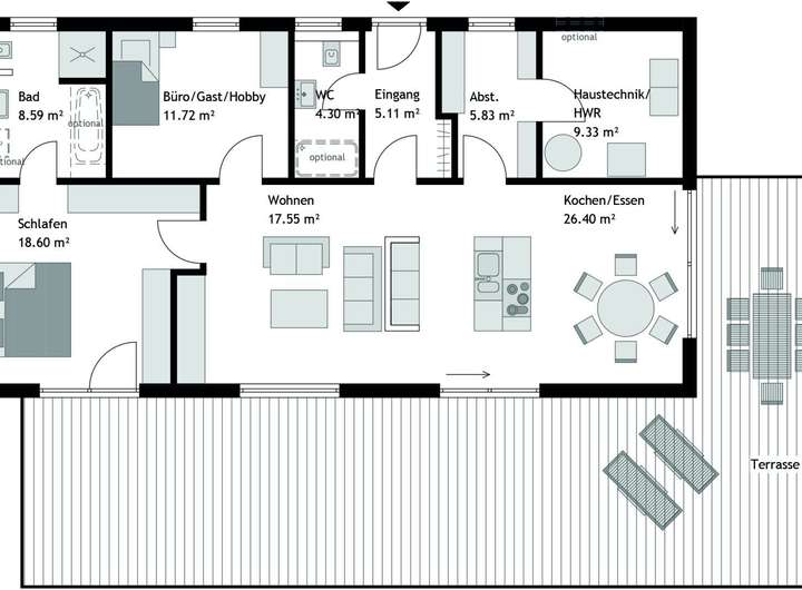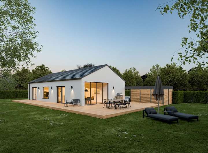 Die Ausstattung dieses Bungalows ist gehoben und besticht durch hochwertige Bodenbeläge aus Fliesen und Laminat - auf Wunsch können auch individuelle Bodenwünsche berücksichtigt werden. Diese Materialien sind nicht nur pflegeleicht und langlebig, sondern verleihen Ihrem Zuhause auch eine zeitlose Eleganz. Die Wärmepumpe als Befeuerungsart sorgt für eine umweltfreundliche und effiziente Energieversorgung, die den KFW40 Standard erfüllt. Das bedeutet für Sie niedrige Energiekosten bei gleichzeitig hohem Wohnkomfort.