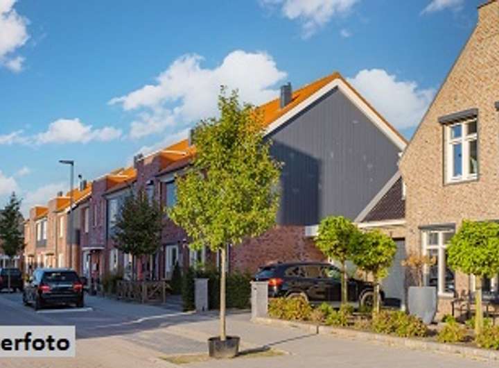 Das Badezimmer im Obergeschoss ist ohne Fenster ausgestattet. Die Beheizung erfolgt durch Fernwärme, ergänzt durch einen Kaminofen im Wohnzimmer. Warmwasser wird über eine Gas-Wandtherme aus dem Jahr 2018 bereitgestellt. Das Wohngebäude insgesamt ist in einem gepflegten Zustand mit den üblichen Gebrauchsspuren, weist jedoch altersbedingte Mängel auf, insbesondere hinsichtlich der energetischen und wirtschaftlichen Überalterung vieler Bauteile. Die Grundstücksgröße beträgt insgesamt 500 m², wobei nur der entsprechende Anteil der Reihenhausanlage erworben wird.