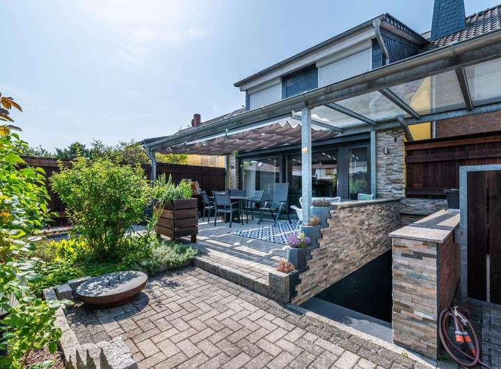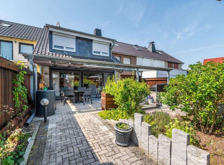 Stilvolles Reihenmittelhaus mit hochwertigem Komplettumbau, moderner Ausstattung und liebevoll gestaltetem Garten und Terrassenbereich.