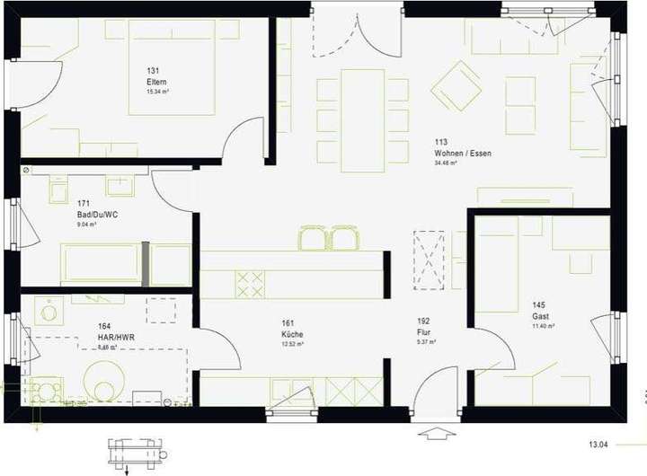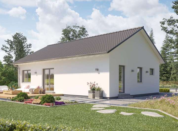 Das Comfort Style 09.01 S steht für erfrischende Simplizität. Auf der 97 m² großen Grundfläche findest du alles, was du brauchst. Außen kompakt, innen offen und hell. Der zeitlose Stil, kombiniert mit einer klaren Formensprache, bietet ein behagliches Ambiente und moderne Leichtigkeit. Der große, lichtdurchflutete Wohn-Ess-Bereich mit angeschlossener Küche ist das Herz dieses Hauses. Er verfügt über einen direkten Gartenzugang und bietet genügend Platz für alltägliche Routinen oder entspannte Abende in Gesellschaft. Hauswirtschaftsraum, Bad, Schlaf- sowie ein Gästezimmer finden ebenfalls im Erdgeschoss ihren Platz. Serienmäßig höhere Wände bringen zusätzlich Weite in die Räume und ergänzen so den durchdachten Grundriss.