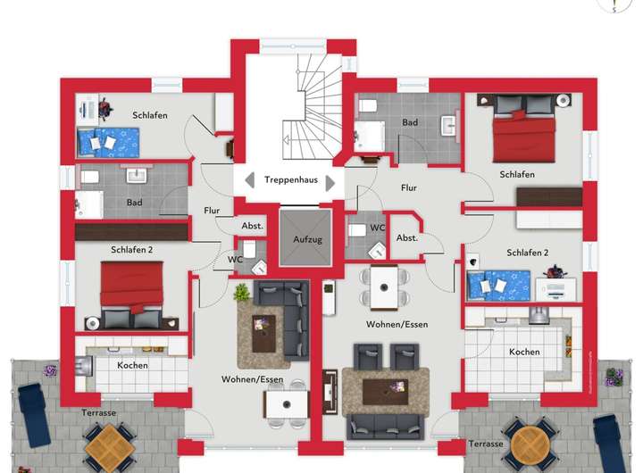 Das Mehrfamilienhaus hat eine Fahrstuhlanlage, die alle Etagen erreicht!