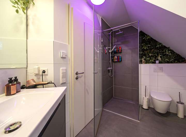 Sanitär: Duschbad je Wohneinheit, Erdgeschoss- und Obergeschosswohnungen mit Gäste-WC