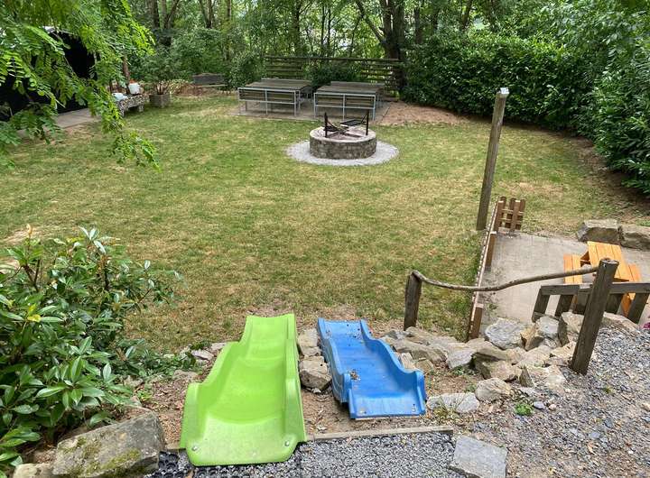 Es verfügt über eine direkte asphaltierte Zufahrt, einen großen Parkplatz, eine Grillstelle, eine Kinderspielecke, Gartenmöbel, sowie eine frisch renovierte Hütte. Die verschiedenen Ebenen bieten viel Platz zum Entspannen, gesellige Stunden mit Freunden/der Familie und verleiht dem Grundstück seinen besonderen Charm.