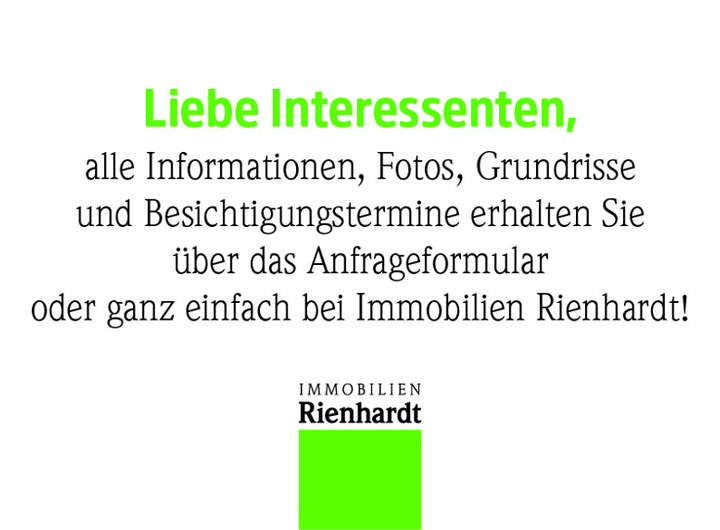 Diese Angaben sollen Ihnen zur Erstinformation dienen. Sehr gerne stellen wir Ihnen ein ausführliches Exposé mit Detailangaben, Bildern, Grundrissen und Adresse per Post, Fax oder E-Mail zur Verfügung. Wir bitten um Ihr Verständnis, dass wir hierzu Ihre vollständige Adresse sowie Ihre Telefonnummer benötigen. Wir werden Ihre Daten selbstverständlich vertraulich behandeln und nicht zu sonstigen Werbezwecken nutzen.
