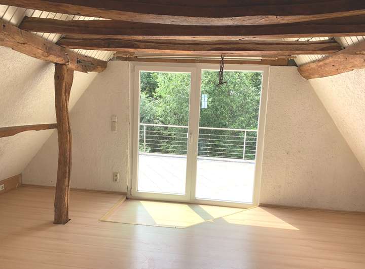 Weiter über das Treppenhaus gelangen Sie in das Dachgeschoss des Hauses. Dieses wurde zu vollwertigem Wohnraum ausgebaut und bietet zwei große Zimmer, wovon eines über direkten Zugang zur großen Dachterrasse verfügt. Auf die Dachterrasse gelangen Sie auch über eine zusätzliche Außen-Wendeltreppe vom Erdgeschoss aus. Eine weitere Schlafebene könnte zusätzlich im Dachraum realisiert werden.