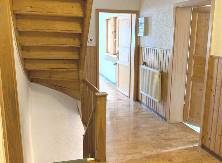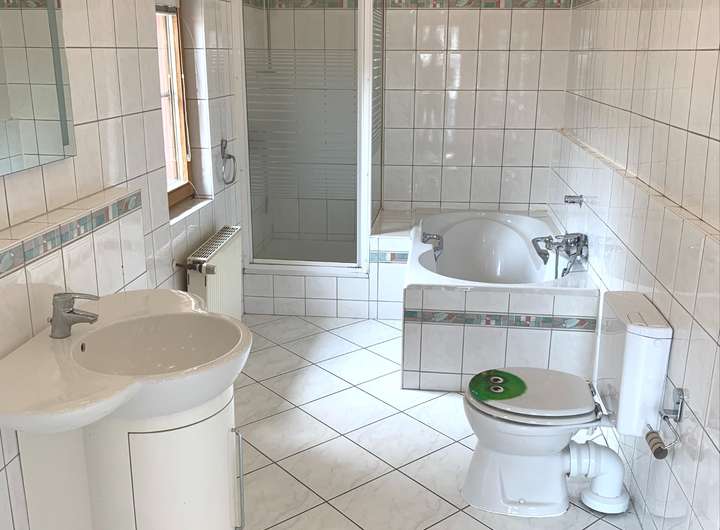 Im ersten Obergeschoss empfängt Sie eine recht großzügige Diele, von der aus alle Räume auf dieser Etage zu begehen sind. Es stehen drei große Schlafzimmer und ein kleinerer Raum zur Verfügung. Auch ein großes Badezimmer mit Badewanne und Dusche befindet sich im ersten Obergeschoss. Highlight hier ist der kleine zusätzliche Balkon, der aktuell über das Badezimmer zu erreichen ist.