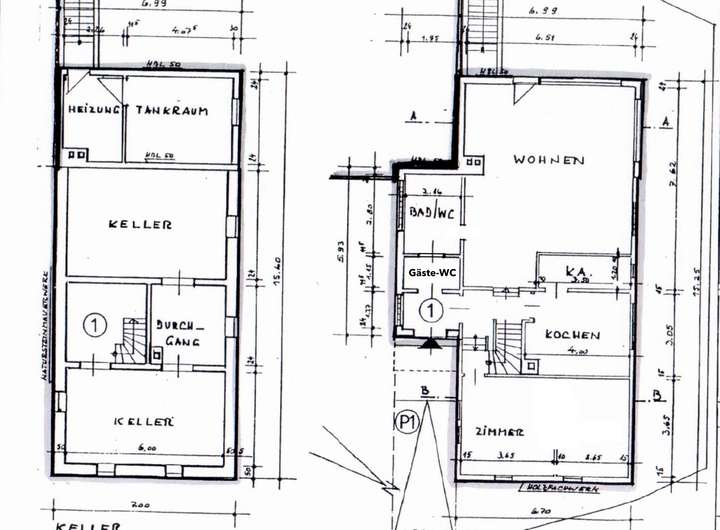 Das Untergeschoss ist in zwei Bereiche aufgeteilt. Innenliegend gelangen Sie zu einem großen Kellerraum, der sich als Vorratsraum anbietet. Über einen separaten Zugang im Außenbereich gelangen Sie in den hinteren Bereich des Kellers, in dem sich neben mehreren Vorratsräumen auch die Heiztechnik befindet.