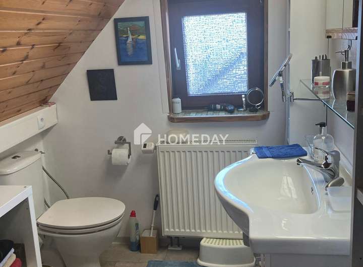 Die Ausstattung umfasst geschmackvolle Holzdielen, Fliesen und Laminat, Holzfenster mit Zweifach-Verglasung und Rollläden sowie eine moderne Gaszentralheizung aus dem Jahr 2020. Vor 2008 wurden die Fenster erneuert und 2010 das Dach saniert, sodass das Haus auch technisch in einem soliden Zustand ist.