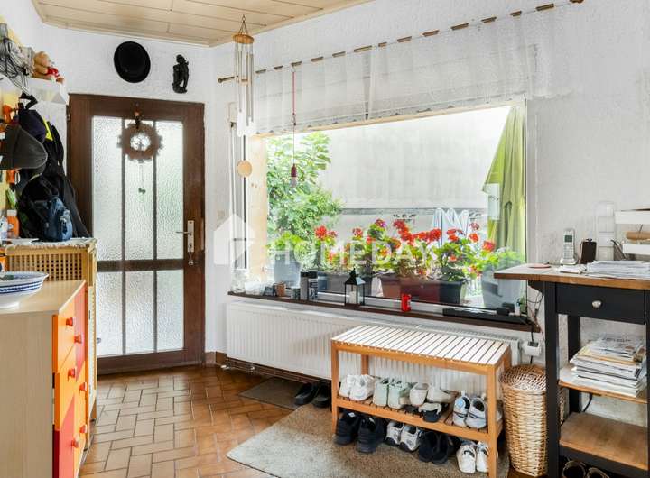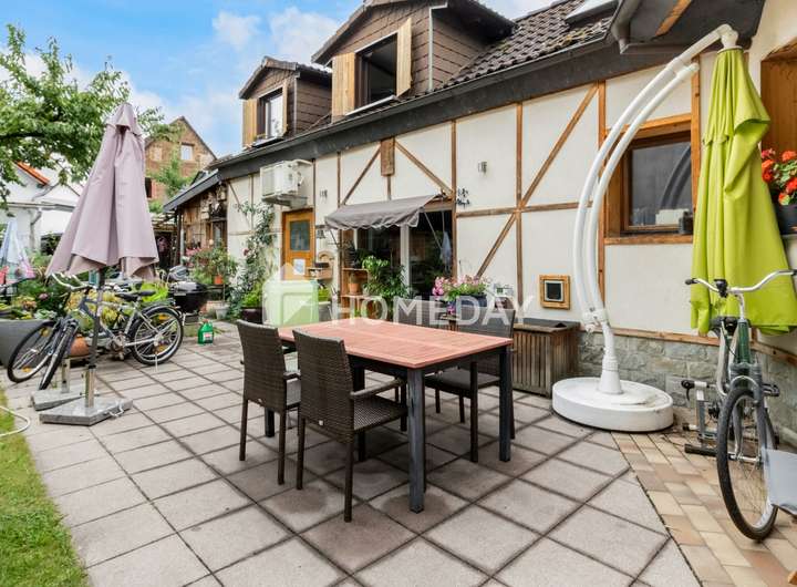Der Außenbereich überzeugt durch einen liebevoll angelegten, pflegeleichten Garten und eine rund 25 Quadratmeter große Terrasse mit östlicher Ausrichtung, die zu sonnigen Stunden im Freien einlädt. Ein Stellplatz auf dem Grundstück sorgt für bequeme Parkmöglichkeiten.