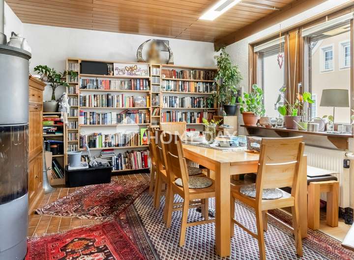 Besonders erwähnenswert ist das teilweise ausgebaute Nebengebäude, das zusätzlichen Wohnraum schafft. Hier lassen sich ein Büro oder ein Atelier perfekt realisieren – ideal für kreative Köpfe oder das Arbeiten von Zuhause. Der Vollkeller bietet weitere beheizte Räume und viel Nutzfläche, etwa für Vorräte oder einen Hobbybereich.