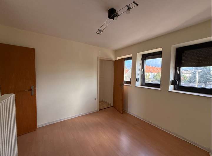 Im Obergeschoss stehen ein Schlafzimmer, ein Kinderzimmer/ Büro und das Badezimmer zur Verfügung.