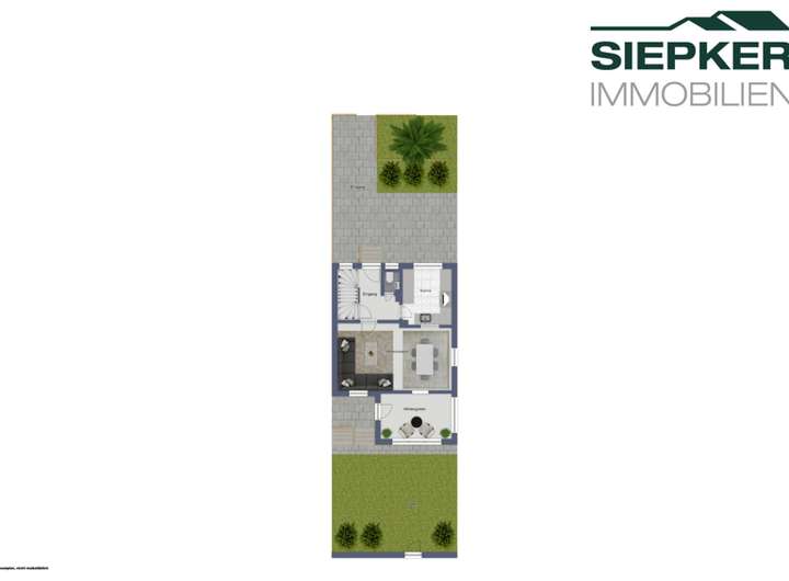 Der helle Wohn- und Essbereich bildet den Mittelpunkt des Hauses und bietet direkten Zugang zum Garten und zur Terrasse. Der Garten lädt zum Entspannen, Spielen oder zu geselligen Stunden im Freien ein und bietet ein angenehmes Maß an Privatsphäre.