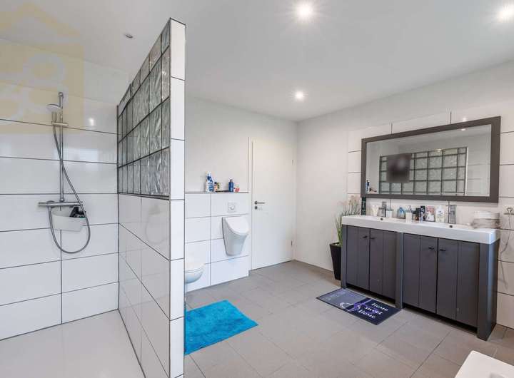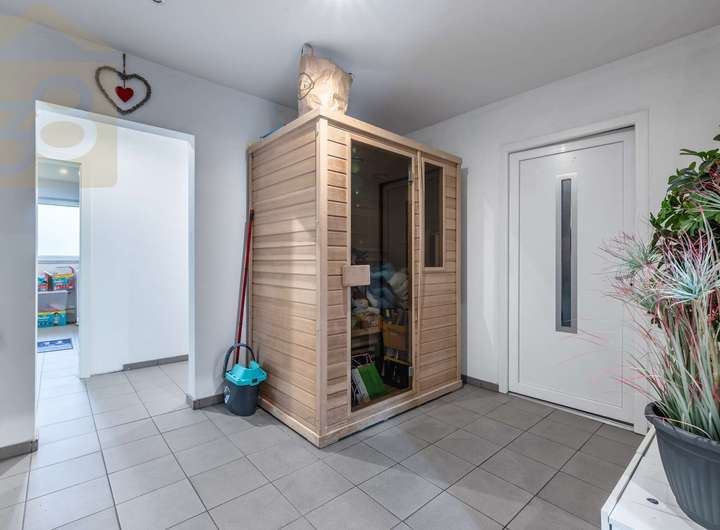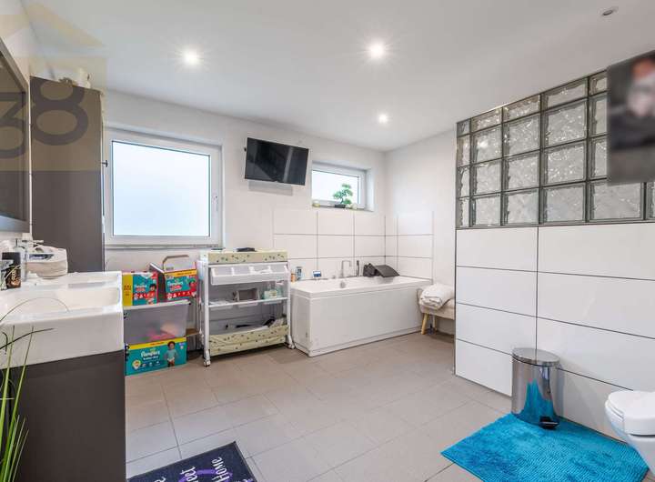 Das Haus ist voll unterkellert und bietet umfangreiche Abstell-, Hobby- und Technikräume. Eine Sauna sorgt hier für zusätzlichen Komfort und Erholung. Beheizt wird die Immobilie über eine moderne Wärmepumpe aus dem Jahr 2019 in Kombination mit einer Fußbodenheizung, die für ein angenehmes Raumklima sorgt. Eine Photovoltaikanlage, installiert im Jahr 2023, trägt zur nachhaltigen Energieversorgung bei. Der Glasfaseranschluss gewährleistet schnelles Internet und macht das Objekt auch für das Arbeiten im Homeoffice besonders attraktiv.