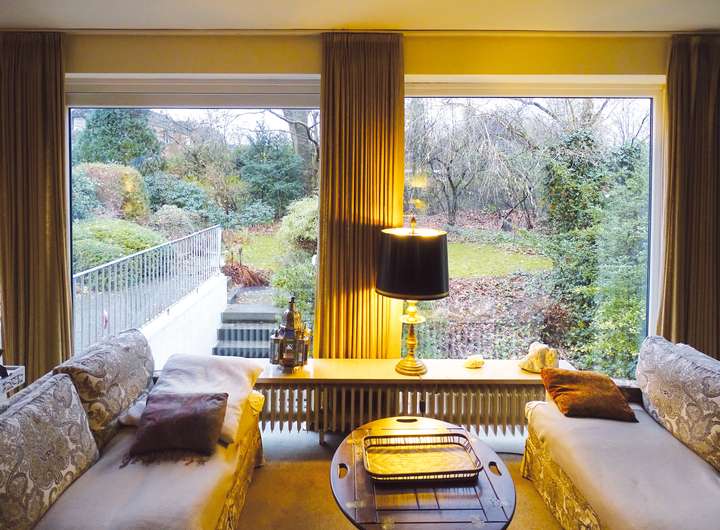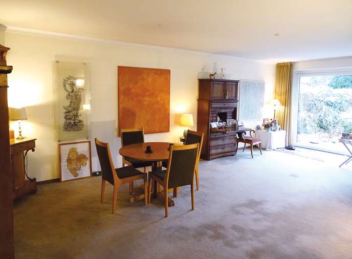 Die besonderen Merkmale der Immobilie sind das 2,58 m-hohe, lichtdurchflutete 51 m² große Wohn-Ess-Zimmer sowie die großzügige, nach Süden zum Gartenbereich ausgerichtete Fensterfront mit insgesamt 5 x ca. 2 m-breiten Isolierglasfenstern plus 2 x leichtgängigen, breiten Schiebetüren im Erdgeschoss und im Souterrain (alle erneuert 2005).
