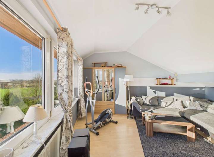 Im ausgebauten Dachbereich befindet sich ein sehr schönes großes Zimmer mit einem Traumblick zu den Allerwiesen.