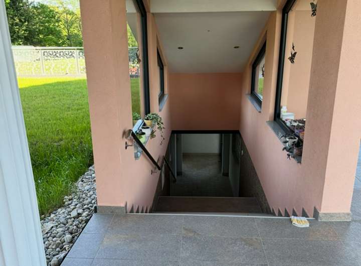 Für Komfort im Alltag sorgen zwei Zufahrten, drei Garagen sowie ein überdachter Zugang zum Haus. Das Objekt wird voll möbliert übergeben – inklusive hochwertiger Gartenmöbel und sämtlicher Geräte, sodass einem sofortigen Einzug nichts im Wege steht.