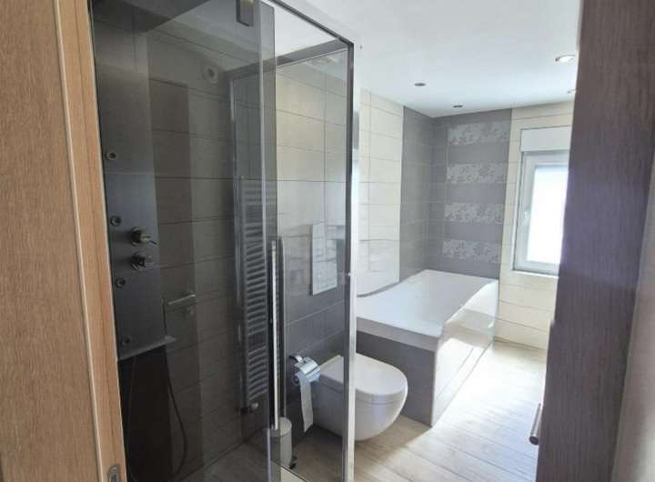 • Ausstattung: Fußbodenheizung, Luftwärmepumpe, Warmwasserspeicher, SAT-TV, Split-Klimaanlagen, Boxspringbetten, moderne Bäder von Villeroy & Boch, Gäste-WC, Glas-Schiebetrennwände