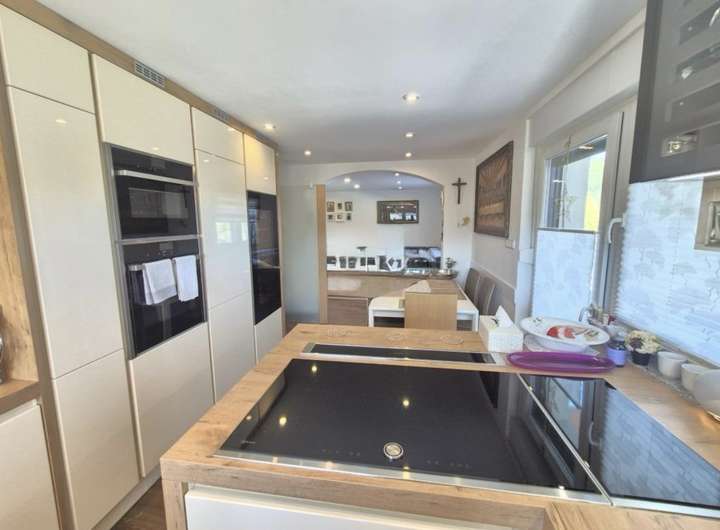 Das Haus bietet mit über 10 Zimmern außergewöhnlich viel Platz und überzeugt mit zwei hochwertigen Einbauküchen im Wert von rund 60.000 €. Die Ausstattung erfüllt höchste Ansprüche: Fußbodenheizung, Luftwärmepumpe, Warmwasserspeicher, Split-Klimaanlagen, SAT-TV, Boxspringbetten sowie moderne Bäder von Villeroy & Boch sorgen für maximalen Wohnkomfort. Ergänzt wird dies durch ein stilvolles Gäste-WC und elegante Glas-Schiebetrennwände.