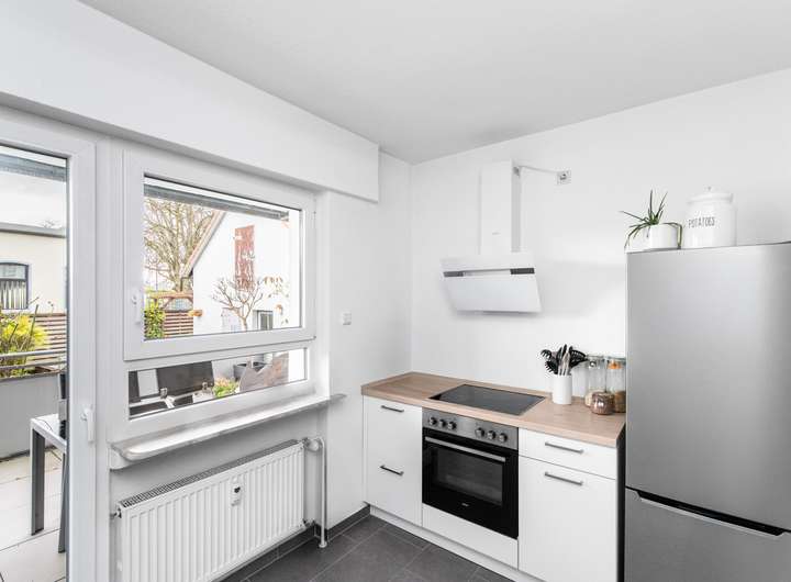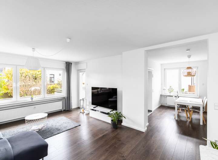 Im Erdgeschoss wartet eine gut geschnittene und sehr helle Wohneinheit auf Sie. Die Räume sind ideal aufeinander abgestimmt:
