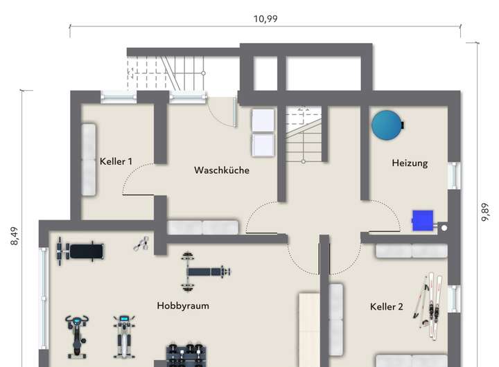 Der große Keller bietet vier weitere Räume – ideal für Hobbys, eine Werkstatt, ein Waschraum, Stauraum oder ein Spielbereich an Regentagen.