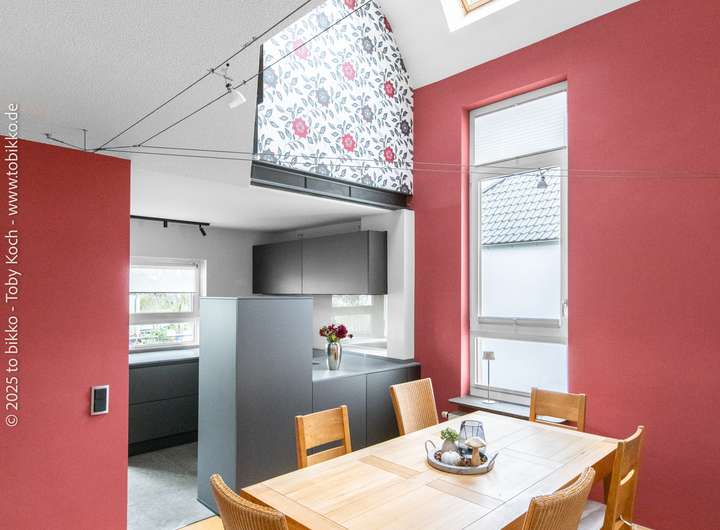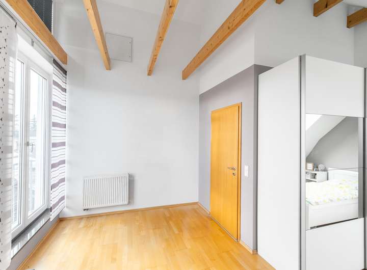 Das Dachgeschoss beeindruckt mit hohen Decken, einem offenen Dachstuhl und viel Charme. Hier befindet sich der private Rückzugsbereich mit einem großen Schlafzimmer, zwei Kinderzimmern und einem modernen Tageslichtbad mit Badewanne und Dusche – ein Ort, an dem sich Kinder wie Erwachsene gleichermaßen wohlfühlen.