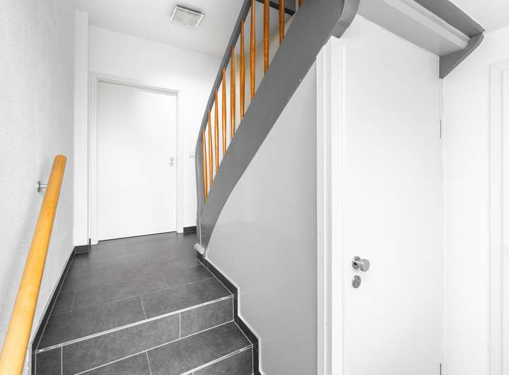 - Wände und Decken: Malervlies/Putz und Raufaser gestrichen