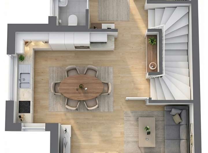 Das Eckhaus wird an ein bestehendes Gebäude angebaut. Die im Exposé dargestellten Grundrisse und Innenraumplanungen dienen als Gestaltungsvorschlag und können in Zusammenarbeit mit dem Bauunternehmen Ihrer Wahl individuell an Ihre persönlichen Bedürfnisse angepasst werden.