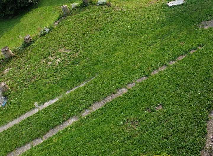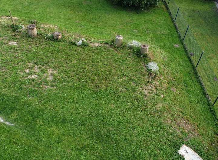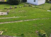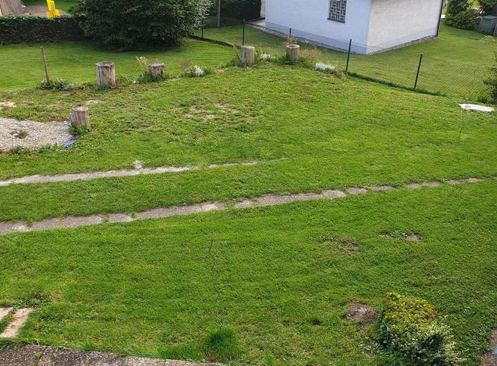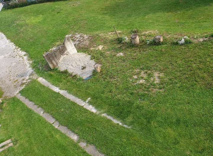 Die kleine vorhandene Betonwand auf dem Grundstück wird noch entfernt (auf Kosten des Verkäufers).