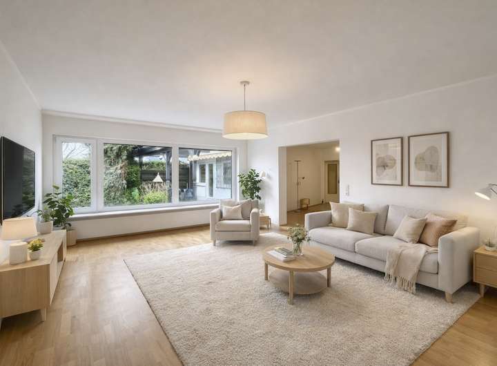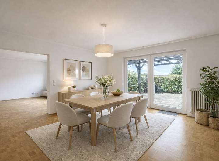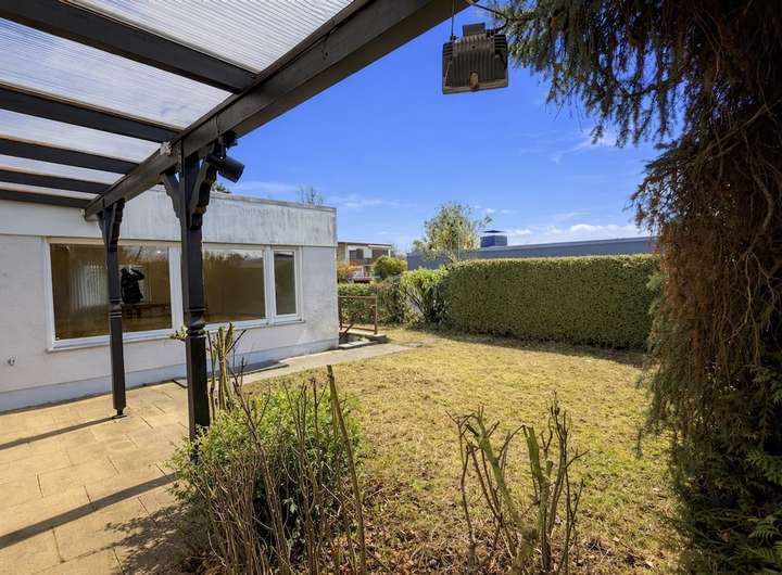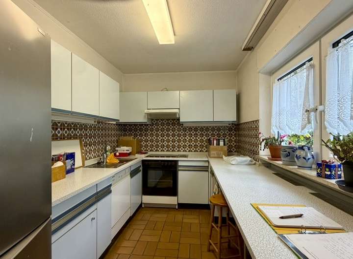 Dieser freistehende Bungalow wurde im Jahr 1974 erbaut. Er überzeugt durch seine großzügige, familienfreundliche Raumaufteilung, einer angenehmen Wohnatmosphäre sowie dem herrlich grünen Grundstück. Ein Zuhause mit viel Platz, Charme und Potenzial zur individuellen Modernisierung. Auf ca.134 m² Wohnfläche erwartet Sie ein durchdachtes Wohnkonzept, das ideal für eine mittelgroße Familie geeignet ist. Herzstück des Hauses ist das große, lichtdurchflutete Wohnzimmer mit hochwertigem Parkettboden und direktem Zugang in den Garten – hier verbindet sich Wohnen mit Natur auf besonders schöne Weise. Die angrenzende Terrasse lädt zum Entspannen und Genießen ein, wobei die Terrassenüberdachung 2017 erneuert wurde und somit auch bei wechselhaftem Wetter angenehme Stunden im Freien ermöglicht. Die Fenster verfügen über moderne 2- und 3-fach Verglasung. Teilweise sind zudem elektrische Rollläden vorhanden. Eine Dachdämmung (ca. 10 cm) ist ebenfalls gegeben, und die Bitumenbahnen wurden 2025 ausgebessert, was den baulichen Zustand des Daches zusätzlich unterstützt. Der Bungalow bietet drei Schlaf- bzw. Kinderzimmer, die allesamt mit gepflegtem Buchenparkett ausgestattet sind. Besonders attraktiv: Vom großen Schlafzimmer aus gelangen Sie ebenfalls direkt in den Garten – ein wunderbarer Start in den Tag mit Blick ins Grüne. Der Flur bietet praktischen Stauraum dank eines beeindruckenden ca. 7 Meter langen Einbauschranks (ca. 40 cm tief) – ideal für Garderobe, Haushaltsgeräte oder Familienbedarf. Das Haus verfügt über ein Gäste-WC sowie ein Hauptbad mit Oberlicht, beide im Originalzustand aus dem Jahr 1974. Die Küche ist mit einer älteren Einbauküche ausgestattet – funktional, jedoch ebenfalls modernisierungsbedürftig. Auch die Elektrik entspricht dem älteren Stand, was Käufern die Möglichkeit gibt, das Haus nach eigenen Vorstellungen technisch und optisch auf ein neues Niveau zu bringen. Ein weiteres Highlight ist der teilweise geflieste Keller mit großen Kellerräumen, der viel Platz für Hobby, Lager oder Freizeit bietet – sogar eine Tischtennisplatte findet hier problemlos ihren Platz. Eine Hebeanlage ist ebenfalls vorhanden. Zusätzlich wurde die Außenisolierung im Bodenbereich ca. 2008 erneuert (bis etwa 2,40 m Tiefe), was eine wertvolle bauliche Maßnahme darstellt. Beheizt wird das Haus über eine Gaszentralheizung der Firma Buderus aus dem Jahr 2001. Abgerundet wird dieses attraktive Angebot durch einen Garagenstellplatz sowie den schönen, Garten, der zum Spielen, Gärtnern oder einfach zum Abschalten einlädt. Das Grundstück bietet Privatsphäre und genügend Raum für entspannte Stunden im Freien – ob als Rückzugsort oder lebendiger Familientreffpunkt. Dieses Haus ist ideal für Käufer, die einen soliden, freistehenden Bungalow in angenehmer Lage suchen und die Chance nutzen möchten, ein Zuhause mit viel Substanz und großem Wohlfühlfaktor nach eigenen Wünschen zu gestalten. Ein Objekt mit Charakter, Platz und einer Atmosphäre, die man spürt, sobald man den Garten betritt. Überzeugen Sie sich selbst von diesem attraktiven Angebot und vereinbaren Sie gerne einen Besichtigungs- und Beratungstermin bei unseren freundlichen Beratern. Wir freuen uns darauf, Ihnen diese besondere Immobilie näher zu bringen!