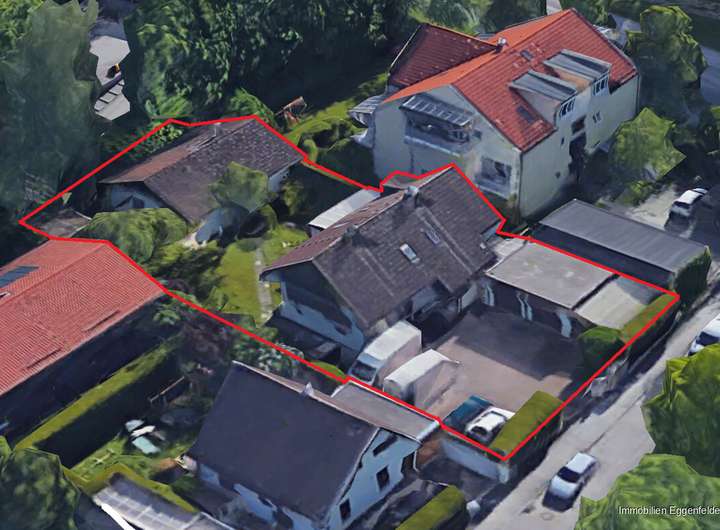 Das zum Verkauf stehende Grundstück in Taufkirchen umfasst eine großzügige Gesamtfläche von circa 957 m² und ist derzeit mit einem Mehrgenerationenhaus samt zwei unterkellerten Garagen sowie einem Bungalow im hinteren Teil bebaut. Alle Gebäude sind in Massivbauweise errichtet. Das Mehrparteienhaus auf dem Grundstück wurde ca. 1981 erbaut. Bis heute sind keine größeren Modernisierungsmaßnahmen vollzogen worden. Der sich ebenfalls auf dem Grundstück befindende Bungalow wurde 1996 errichtet.