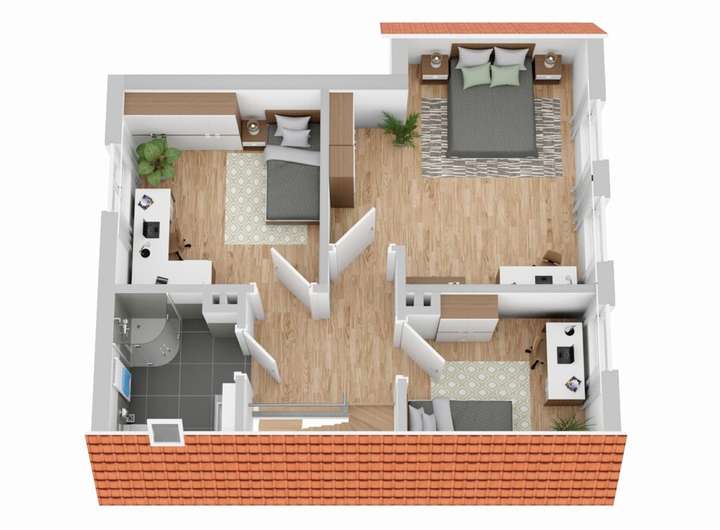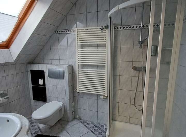Im Dachgeschoss stehen ein Schlafzimmer, zwei Kinderzimmer sowie ein Duschbad zur Verfügung. Das Badezimmer wurde 1995 saniert.