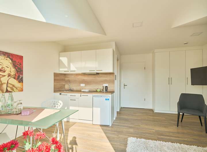 Die Apartments sind stellenweise vollständig möbliert und jeweils mit eigener Küche ausgestattet.