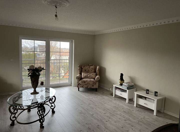 Hier finden Sie ein helles Wohnzimmer mit Balkon und Zugang zum Schlafzimmer, ein weiteres Zimmer, eine Küche und ein Tageslichtbad mit Badewanne.