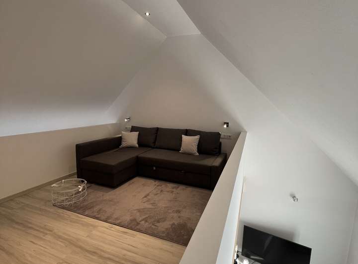 • Spitzboden: Offener, wohnlich gestalteter Bereich – ideal als Leseecke, Rückzugsort oder Homeoffice