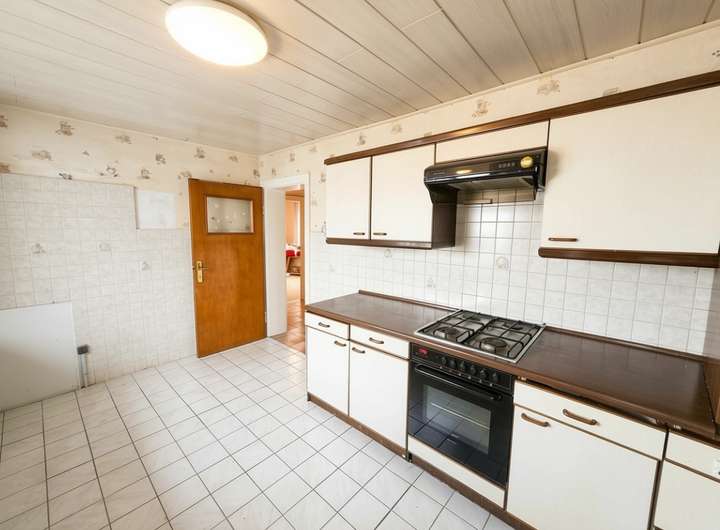 Die Immobilie ist renovierungsbedürftig (z. B. Oberflächen, Bodenbeläge, Malerarbeiten – je nach Anspruch ggf. weitere Gewerke).