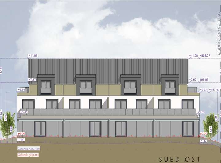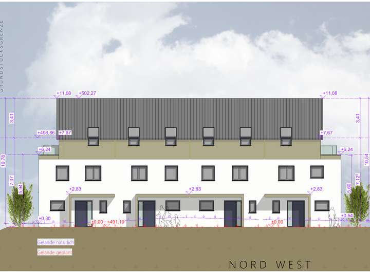 Die vier vollunterkellerten Reihenhäuser sind geplant mit jeweils