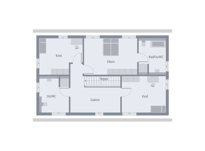 Ein wahres Platzwunder ist unser Design 7. Hier stehen Ihnen auf zwei Etagen 185 m² zur Verfügung. Zentrale Anlaufstelle im Erdgeschoss ist der mehr als 36 m² große Wohn-Ess-Bereich, an den auf der einen Seite eine großzügige Küche und auf der anderen Seite ein Arbeitszimmer anschließt. Ein geräumiger Hauswirtschaftsraum sowie ein kleines Gäste-WC befinden sich ebenfalls in diesem Stockwerk. Von der Diele führt eine Treppe direkt ins Highlight der ersten Etage: die Galerie, die beispielsweise als Bibliothek genutzt werden kann. Die knapp 17 m² bieten auch noch ausreichend Platz für eine Leseecke. Von der Galerie erreicht man eines der beiden Bäder, das Eltern-Schlafzimmer, an das sich ein separates Bad anschließt, sowie zwei weitere Zimmer, die als Kinder- oder Gästezimmer genutzt werden können.