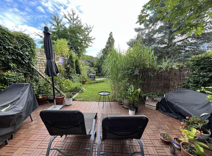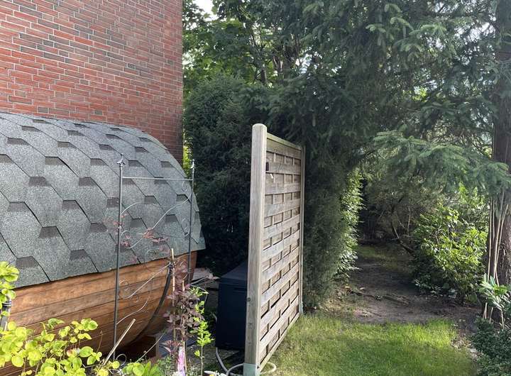 Der Garten verfügt seit 2021 über eine Fass-Sauna und eine Gartendusche. Zur Bewässerung kann Wasser aus einem Regenwasserschacht im Garten genutzt werden. Der Keller besteht aus einer Betonwanne und ist vollständig wasserdicht. Weitere Abstellflächen befinden sich auf dem Dachboden über dem ausgebauten Dachgeschoss, der jedoch nicht gedämmt ist. Im gesamten Haus wurden Laminat, Vinylboden in Holzoptik oder Fliesen verlegt. Die Terrasse ist mit Holzfliesen gestaltet und lädt zu erholsamen Stunden im Freien ein.