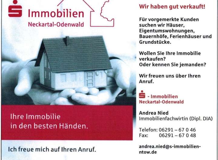 Wir freuen uns schon jetzt auf Ihre Rückmeldung und vereinbaren gerne, nach Absprache, eine Besichtigung mit Ihnen vor Ort: Andrea Nied, Sparkassen-Immobilien GmbH, Telefon: 06261 - 86 4193.