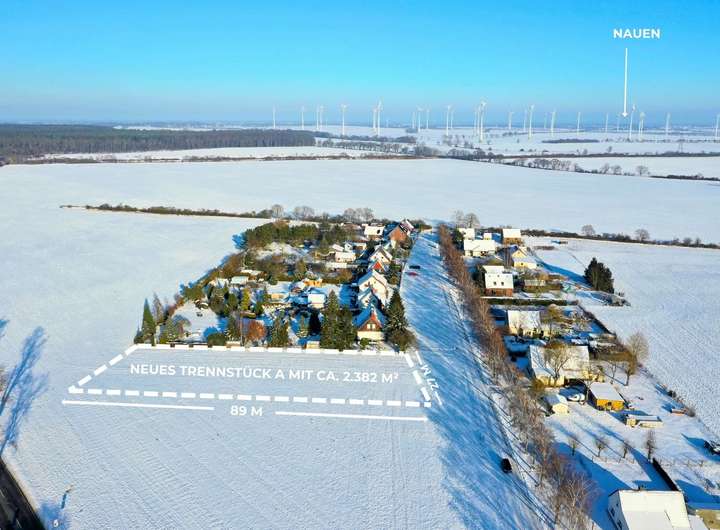 Zum Verkauf steht eine noch zu vermessende, ca. 2.382 m² große Teilfläche eines insgesamt ca. 4.842 m² umfassenden Grundstücks im Nauener Ortsteil Groß Behnitz. Das Grundstück ist bauträgerfrei und richtet sich an Bauherren, die Raum, Offenheit und eine naturnahe Wohnlage zu schätzen wissen.