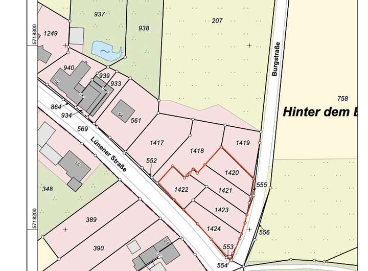 Zum Verkauf stehen mehrere Baugrundstücke in Bergkamen-Oberaden mit einer Gesamtfläche von 1.590 m². Die Fläche ist in 5 einzelne Flurstücke unterteilt - eine Parzelle ist bereits verkauft.